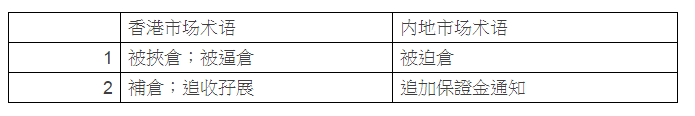 2.中港金融词汇对照表: