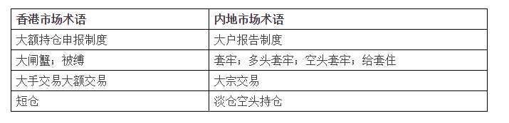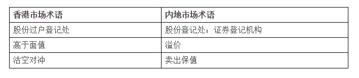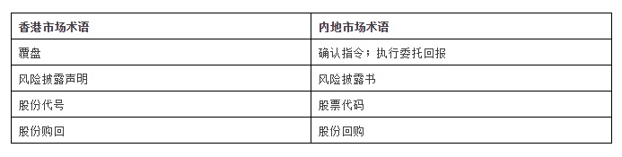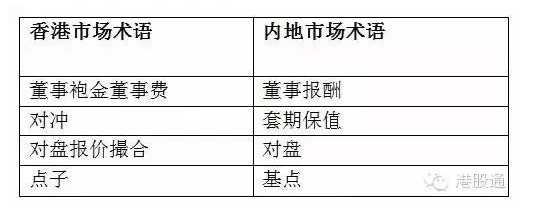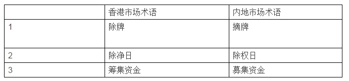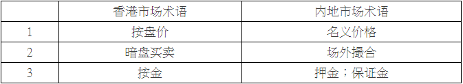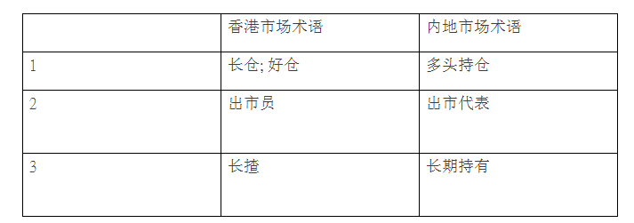 3.中港金融词汇对照表: