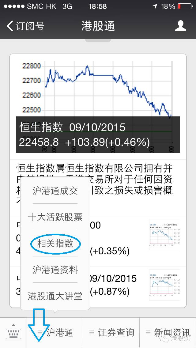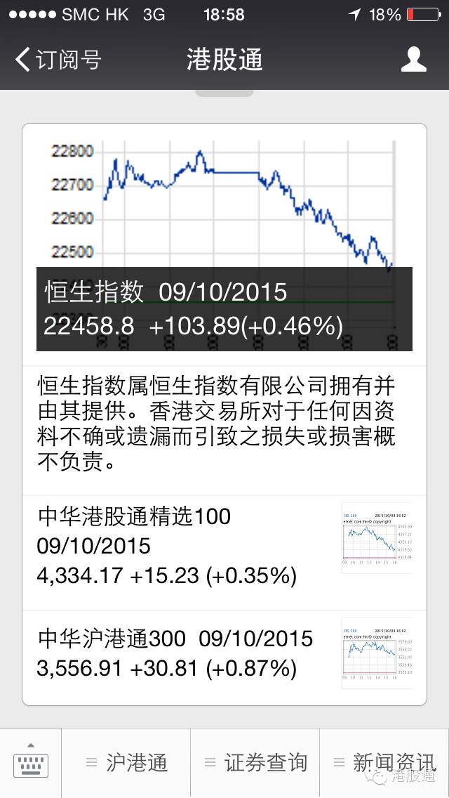 港股通微信号新功能:沪港通指数系列查询